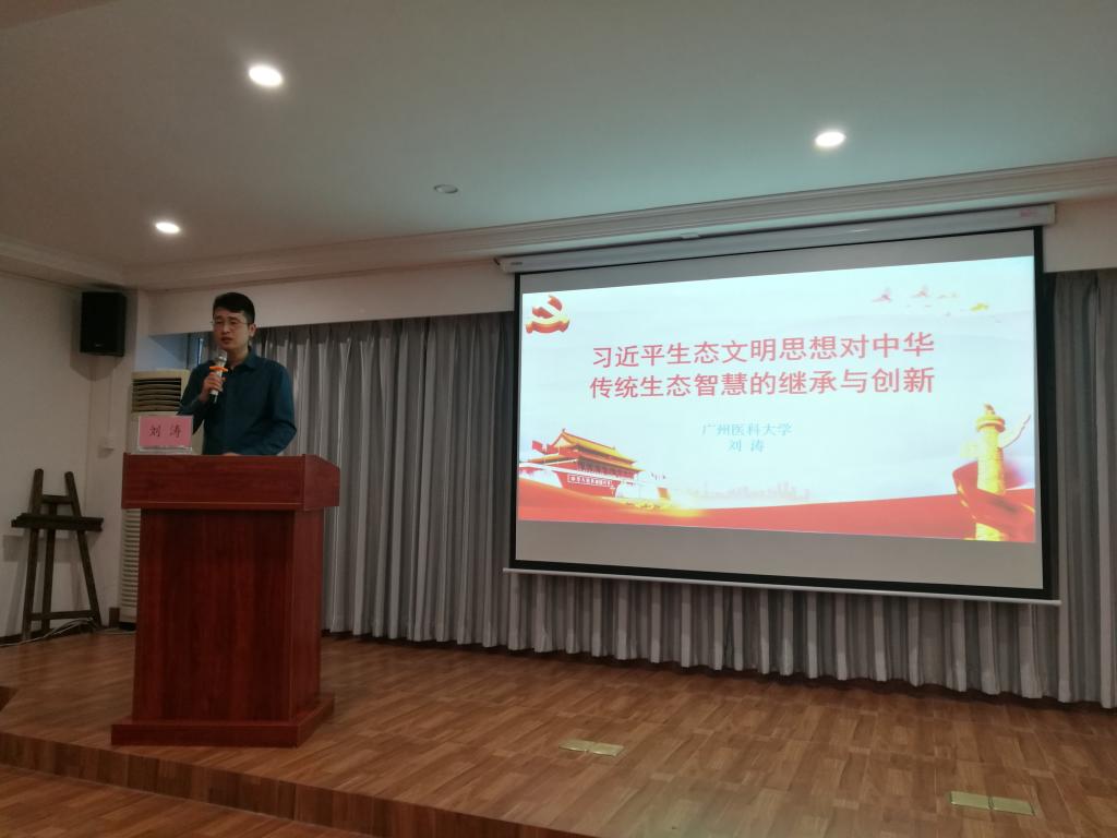 4月12日晚,亚洲色吧 党总支学生支部在越秀校区10栋1306室举办“习近平生态文明思想对中华传统生态智慧的传承与创新”专题培训讲座,活动由学生党支部书记刘宇珊老师主持,邀请马克思主义亚洲色吧 副教授刘涛老师作主讲嘉宾。