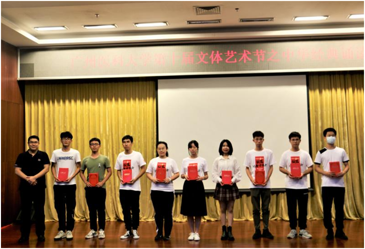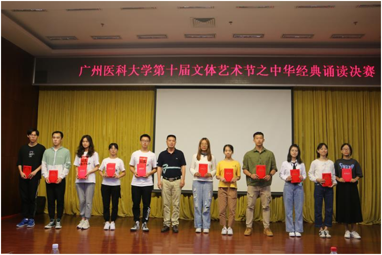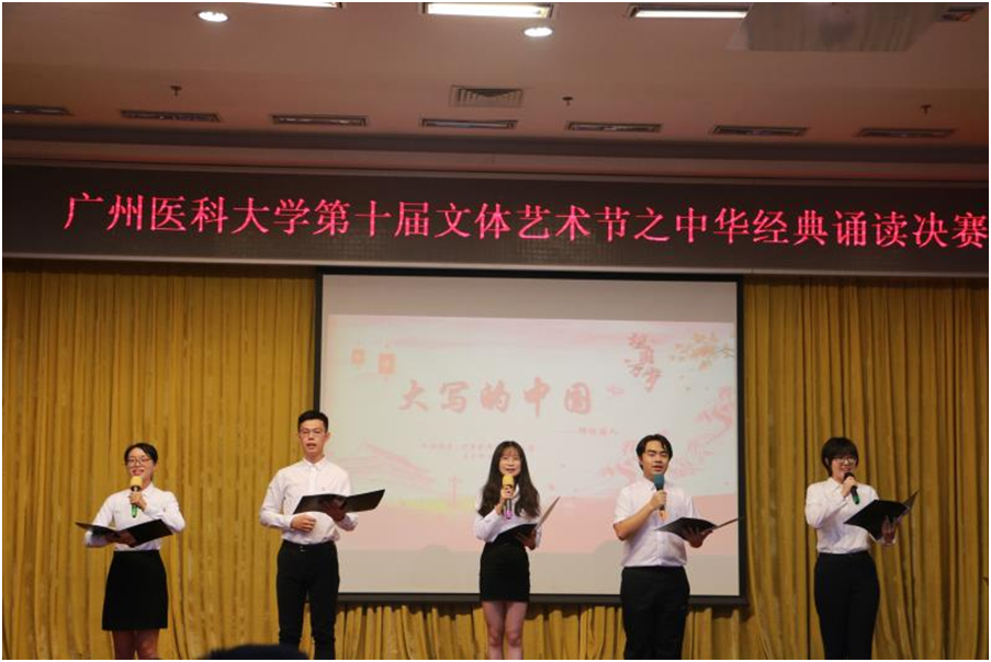 为传承中华优秀传统文化,弘扬我国伟大民族精神,11月6日晚上,由亚洲色吧 团委主办、亚洲色吧 承办 “诵红色经典、扬民族精神”广州医科大学第十届文体艺术节中华经典诵读决赛在番禺校区图书馆报告厅拉开了帷幕。亚洲色吧 宣传部周麟部长、团委曾王兴书记、马克思主义亚洲色吧 龚超副院长、马克思主义亚洲色吧 朱云副教授、亚洲色吧 党总支刘宇珊副书记和学生办路成浩老师出席了本次活动。经过初赛和复赛,有30支队伍最终进入决赛。