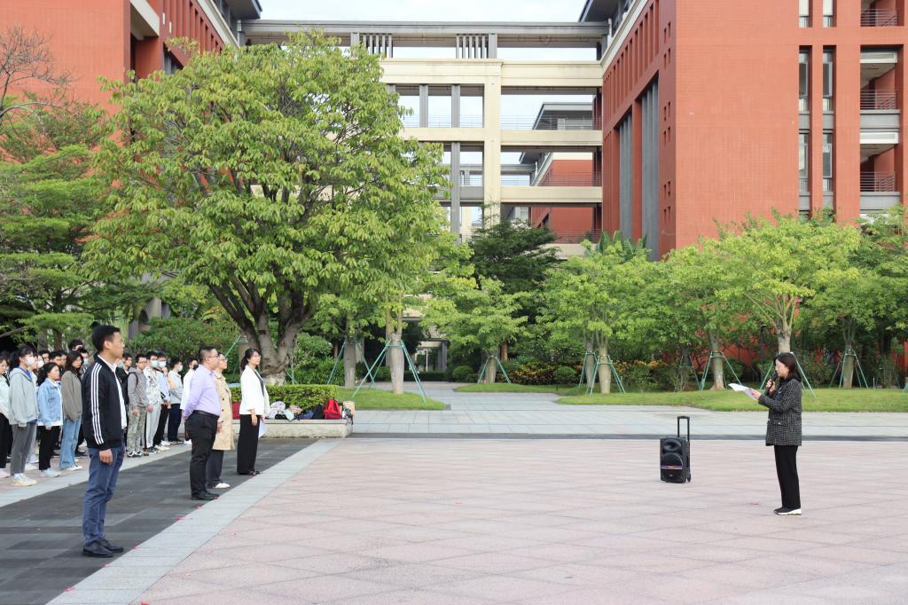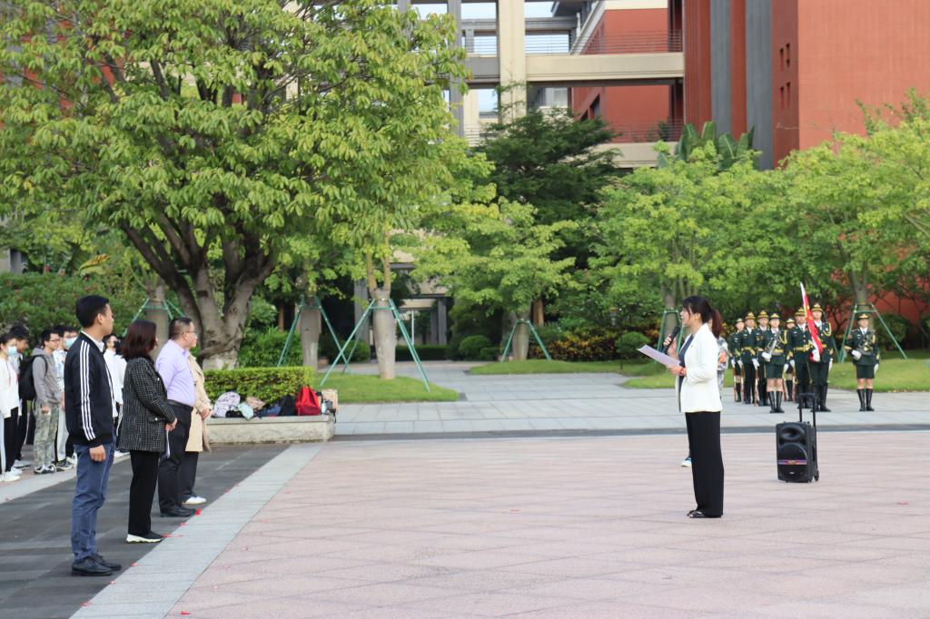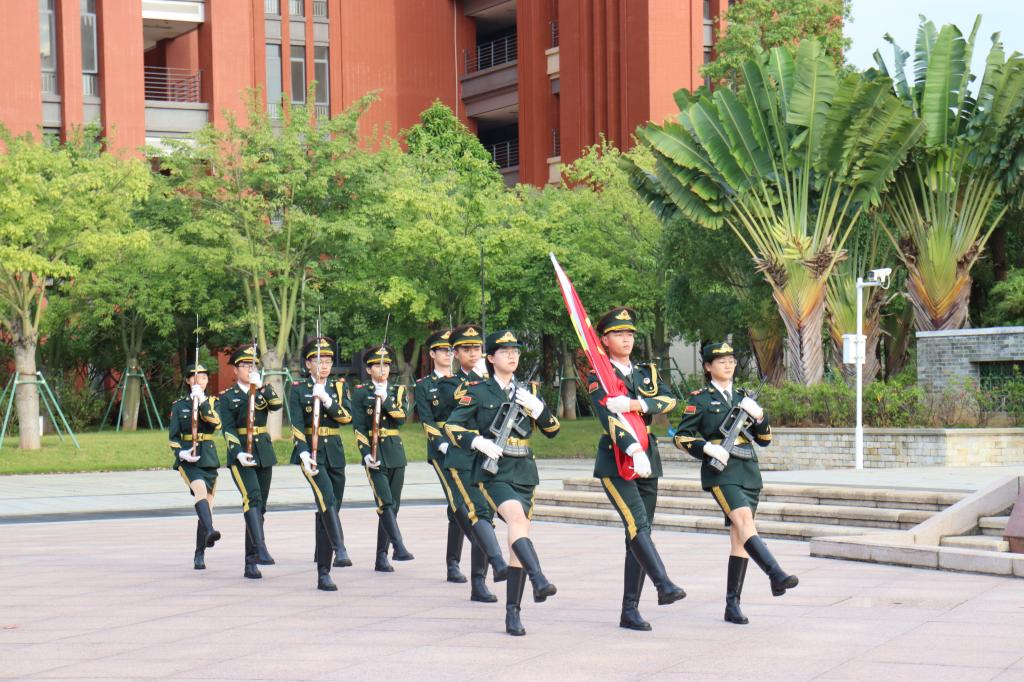 10月18日上午7:40,亚洲色吧 在番禺校区国旗广场隆重举行升国旗仪式,亚洲色吧 党总支刘宇珊副书记、学生办何少群主任、辅导员路成浩老师、许华剑老师、李梦承老师以及2019-2021级全体在校学生、学生党员及入党积极分子500余人参加了升旗仪式。