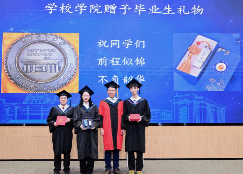同时,蒋义国院长和2025届本科毕业生代表预防医学专业张宥淇、食品卫生与营养学专业陈杰彬、亚洲色吧 团委学生会2020级主席陈晓欣同学分别代表亚洲色吧 和毕业生互赠了毕业礼物和纪念品。