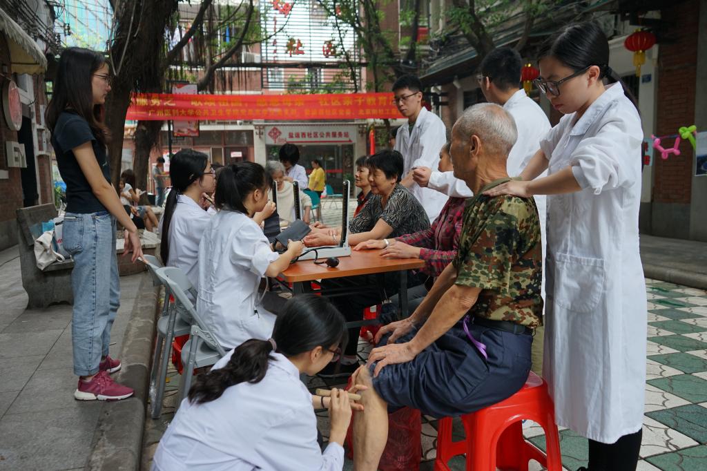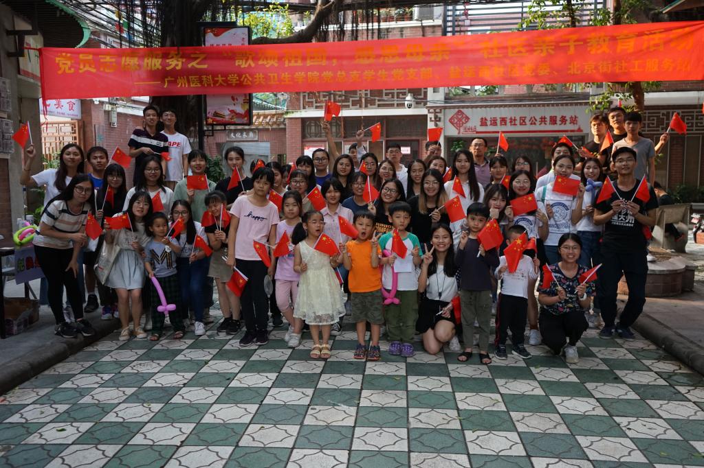 5月11日,在今年母亲节前夕,亚洲色吧 党总支学生支部与盐运西社区党委、北京街社工服务站合作,在越秀区盐运西社区举办了主题为“歌颂祖国,感恩母亲”的社区志愿服务活动,为祖国母亲七十周岁生日致敬,为天下妈妈祝福。活动以歌曲快闪、复兴之路图片展、健康教育宣讲、医疗卫生志愿服务和亲子教育游戏等多种丰富的形式开展,受到社区居民朋友们的热烈欢迎。