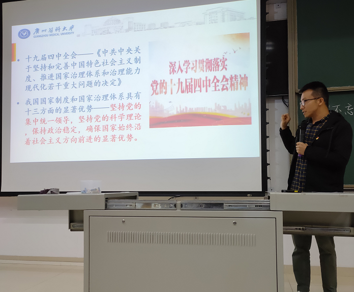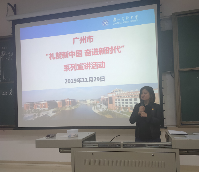 11月29日晚,根据市委宣传部《关于印发<“礼赞新中国奋进新时代”广州千场大宣讲活动实施方案>的通知》和我校宣传部要求,为深入推进习近平新时代中国特色社会主义思想的学习宣传贯彻,庆祝中华人民共和国成立70周年,同时也为响应“不忘初心,牢记使命”主题教育调研中学生党员提出希望增加专题理论学习需求,亚洲色吧 党总支在番禺校区A3-102室举办专题宣讲学习活动。
