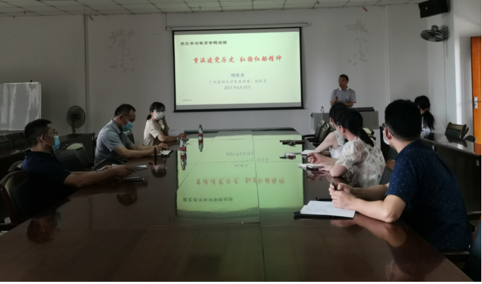 2021年6月15日下午,我校党委委员、副校长胡丙杰同志为亚洲色吧 党总支第一教工党支部上党史学习教育专题党课,授课题目为“重温建党历史,弘扬红船精神”。支部全体教工党员参加了学习。