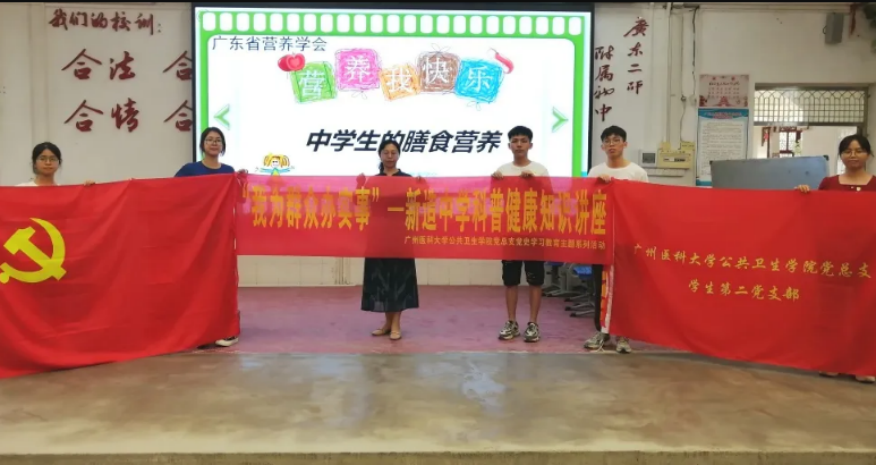 亚洲色吧 党总支教工第二支部、学生第一支部、学生第二支部联合举办了“我为群众办实事——营养健康知识进校园、进社区”系列活动,包括营养健康知识进广医之健康知识科普暨科学膳食搭配大赛、六榕社区健康科普知识宣讲、广东第二师范亚洲色吧 番禺附属初级中学营养健康知识科普活动等。为社区居民和中小学生进一步科普了营养健康知识,把为群众办实事融入工作,把党史教育学习精神转化为工作动力,以为人民办实事好事的实际行动检验学习效果,加强人民群众健康意识,提高群众健康水平,为“健康中国”贡献力量。