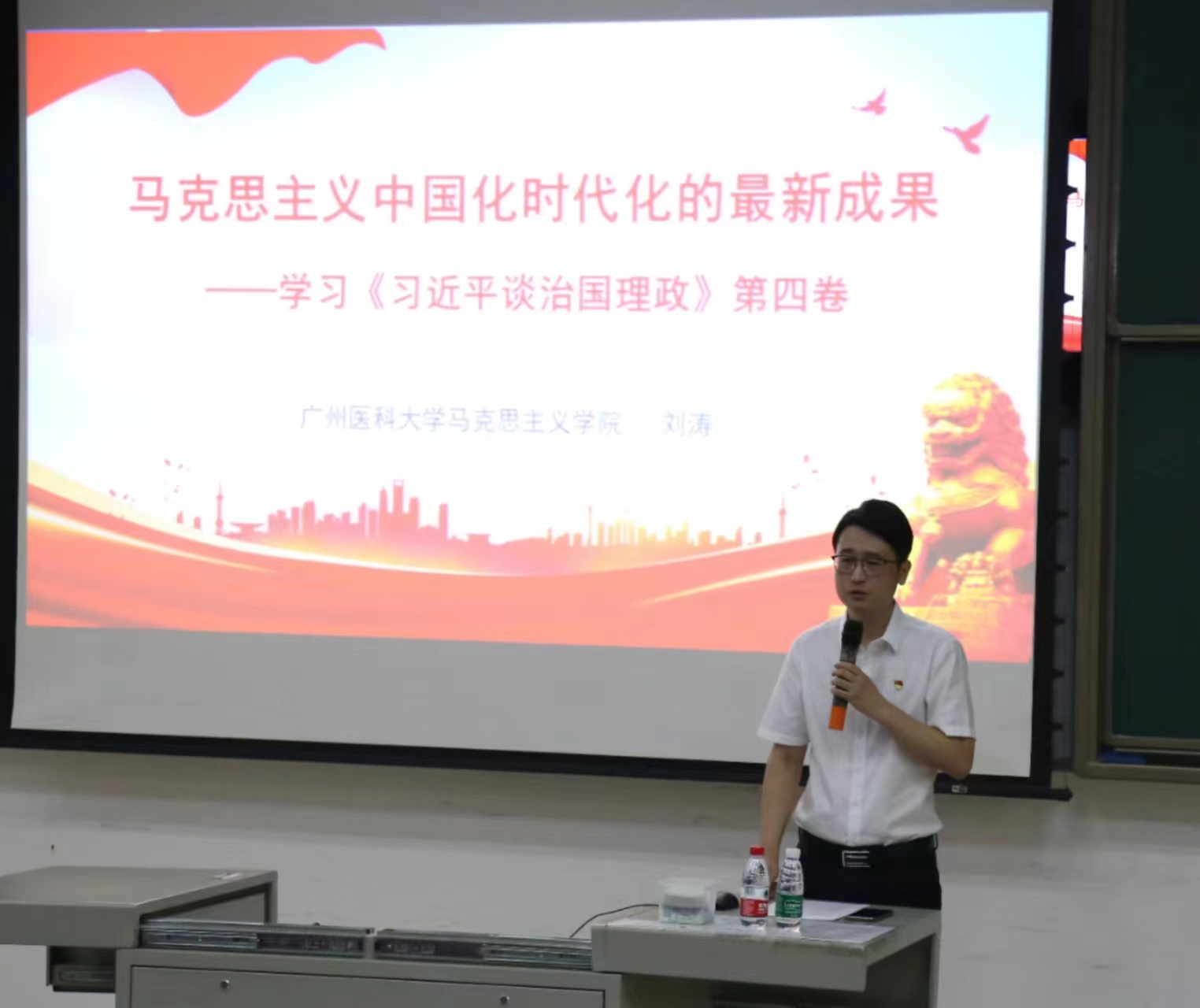 9月23日上午,亚洲色吧 党总支联合教辅党总支、后勤党总支在番禺校区开展学习贯彻《习近平谈治国理政》第四卷专题宣讲会。我校宣讲专家组成员,马克思主义亚洲色吧 刘涛教授做辅导报告,亚洲色吧 党总支刘宇珊副书记主持并讲话。