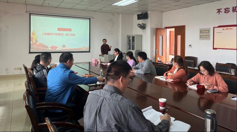 2022年10月,党的二十大审议通过了《中国共产党章程(修正案)》,胡丙杰副校长紧密围绕本次《中国共产党章程》修订背景和修订主要内容,为亚洲色吧 教工第一支部党员进一步解读了二十大党章修正案的重大历史意义。胡丙杰副校长指出,全体党员同志要深刻把握新的伟大斗争历史特点,夺取新时代中国特色社会主义伟大胜利;要把学习宣传贯彻党的二十大精神作为当前和今后一段时间的首要政治任务和长期战略任务;要做到知其言更知其义,理论联系实际,切实把学习成果转化为推动高质量发展的工作成效。