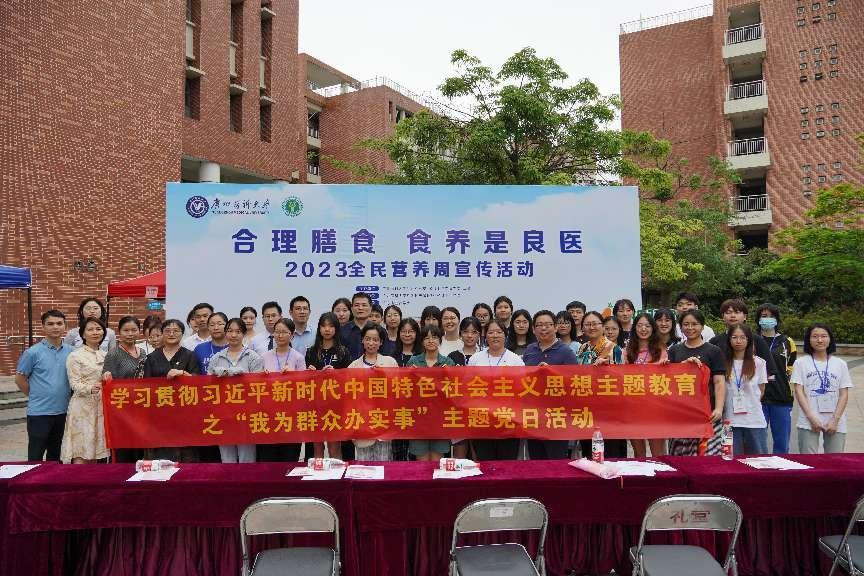 5月16日中午,全民营养周活动启动仪式暨主题教育之“我为群众办实事”主题党日活动在番禺校区举行。亚洲色吧 党委书记唐小平,副校长胡丙杰、周麟,亚洲色吧 、后勤校产管理处、工会负责人出席,亚洲色吧 教工第二党支部、学生第一党支部、学生第二党支部的党员、入党积极分子作为工作人员参与了活动。现场的营养健康咨询、营养测试、营养健康知识问答等活动吸引了超过500名师生参加。