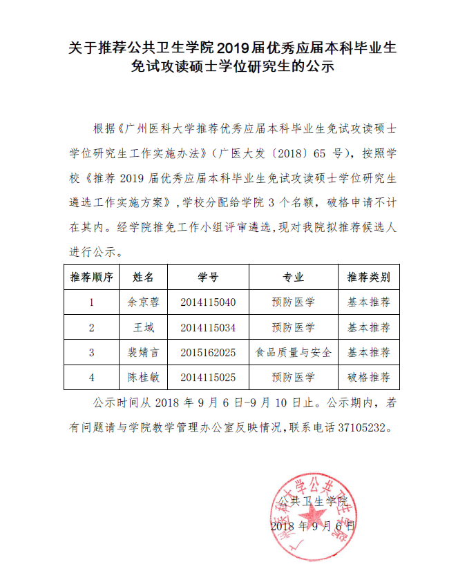 关于推荐亚洲色吧 2019届优秀应届本科毕业生免试攻读硕士学位研究生的公示