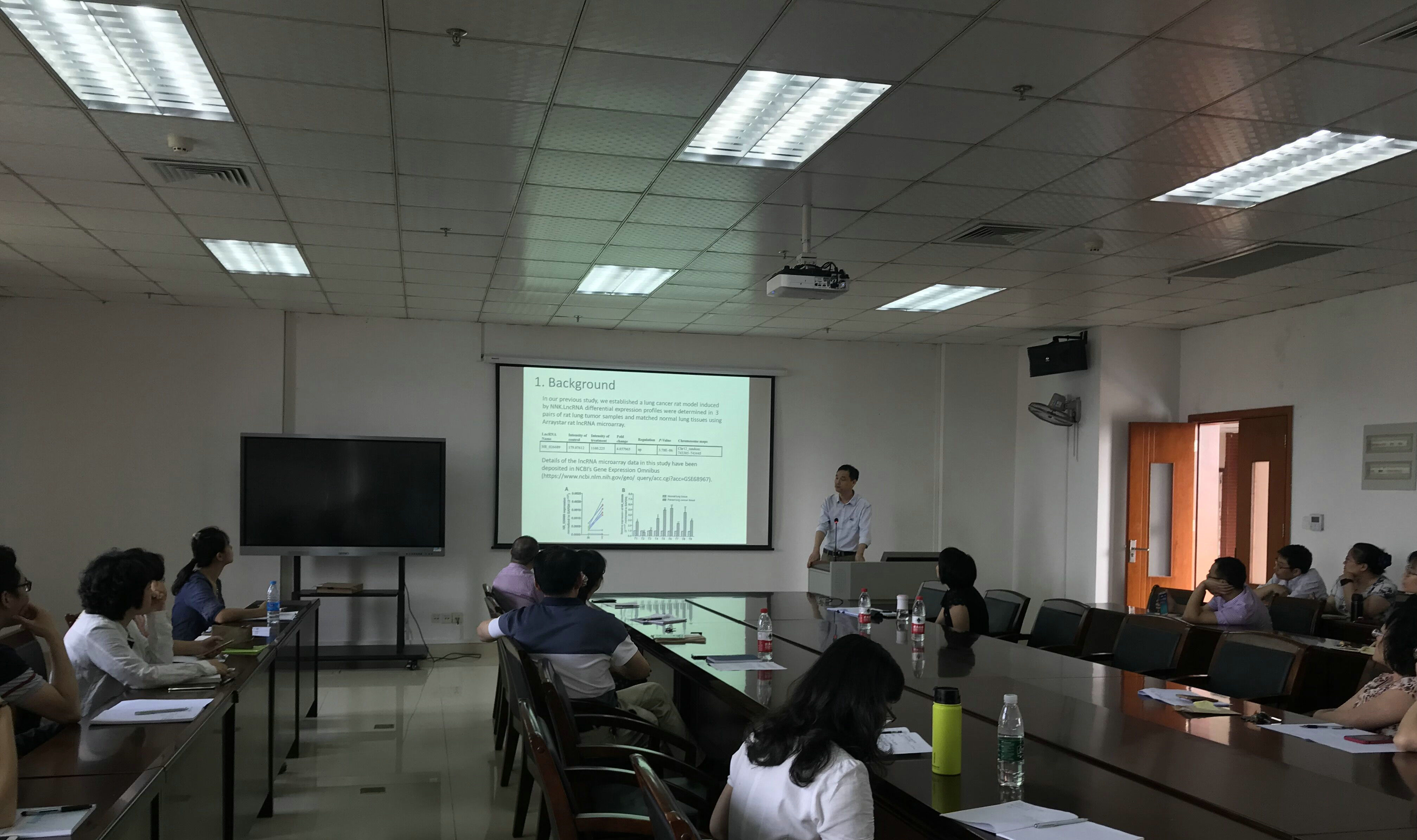 5月18日下午,亚洲色吧 吴建军副教授做“长链非编码RNA介导NNK诱导人支气管上皮细胞转化的作用与机制研究”学术报告(吴建军副教授曾赴美国肯塔基大学医亚洲色吧 作博后研究1年),汇报会由亚洲色吧 副院长蒋义国教授主持。吴老师详细介绍了在美访学期间开展的研究内容及实验室工作情况,还分享了国外实验室在安全管理方面值得学习和借鉴的地方。蒋副院长强调当前的高水平大学建设给亚洲色吧 老师们带来更多的发展机遇和资源,希望亚洲色吧 教师抓紧机遇、珍惜资源、多学习、多干事、干实事,为亚洲色吧 教学科研水平的提升,为高水平大学建设贡献自己的力量。