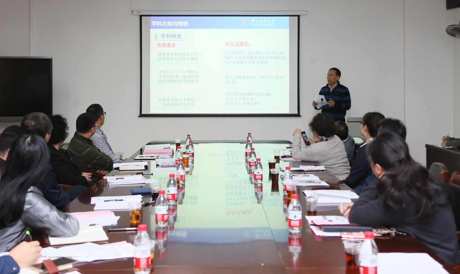 首先,刘金保副校长指出了影响公卫亚洲色吧 学位点建设的诸如学科带头人、学术骨干的引培,人才梯队的形成与团队稳定,实验资源的整合与区分,进一步端正学术风气等问题。对照教育部关于申请公共卫生与预防医学一级学科博士学位授权点的具体指标,公卫亚洲色吧 院长蒋义国教授汇报了申请一级学科博士点具备的条件和存在的差距。相关职能部门负责人和亚洲色吧 领导对问题进行回应。