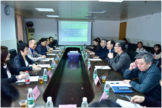 座谈会中,附属十二医院黄颖烽院长和潘静科长详细介绍了医院的主要特色、发展规划和教学科研等方面的成绩,医院其他领导也分别介绍了与我校合办的职业与环境卫生研究所及耳鼻咽喉头颈外科研究所的建设情况。亚洲色吧 领导蒋义国以PPT形式介绍和展示了亚洲色吧 发展历程、优势学科和学生培养等情况,并欣喜地分享了我校药理与毒理学学科进入ESI学科全球排名前1%的喜讯。座谈会上,双方就如何加强亚洲色吧 预防医学专业学生的培养进行了深入的探讨,还就下一步深化教学合作、共建MPH培养基地和研究所等交换了意见。会后,医院主要负责人还引领我们参观了医院职业卫生的工作场所和实验室。