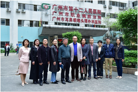 2019年3月19日上午,亚洲色吧 领导蒋义国、杨巧媛副院长带领院教学办、学生办及预防医学系负责人等一行7人,到广州医科大学附属市十二人民医院(广州市职业病防治院)进行实习巡点。亚洲色吧 教师们受到附属十二人民医院的热情接待,出席巡点座谈会的医院领导有黄颖烽院长、于锋副院长、胡志兵副院长、刘移民首席专家、科教科潘静科长,以及该院职业卫生教研室主要骨干与亚洲色吧 的本科实习生代表。
