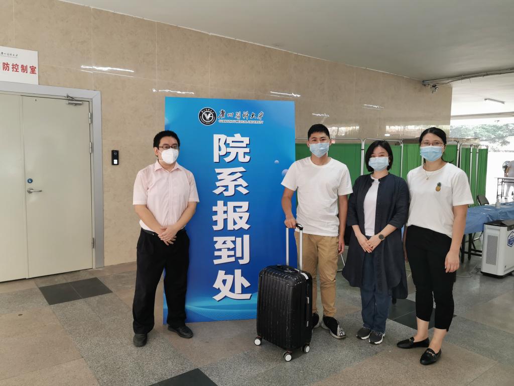刘宇珊副书记、学生办老师与亚洲色吧 首位返校学生