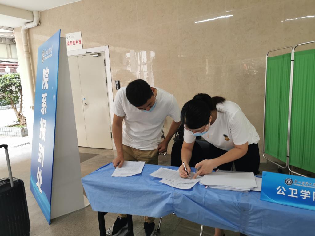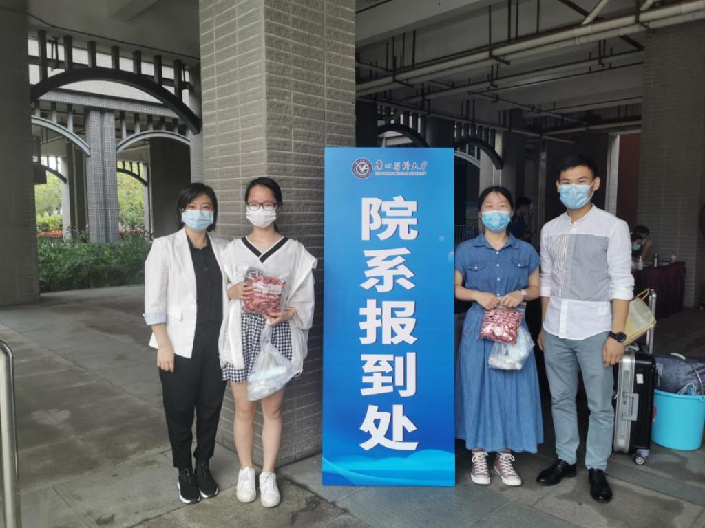 亚洲色吧 党总支刘宇珊副书记带领学生办全体老师在番禺校区和越秀校区迎接返校学生,并全程指导同学们完成报到登记、流行病学筛查、核酸检测及宿舍入住等相关事宜。