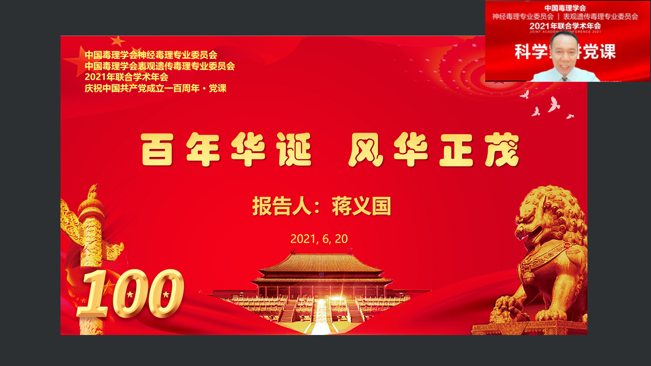 会议主席,亚洲色吧 蒋义国教授,在会议期间为两个专业委员会委员和参会的中共党员作了题为“庆祝中国共产党成立100周年----百年华诞,风华正茂”的“科学家讲党课”报告。20日晚上,还召开了专业委员会会议。表观遗传毒理专业委员会秘书长,亚洲色吧 吴建军教授,和新当选的副秘书长周芸教授,分别主持和发言。专委会主任委员蒋义国教授,就学会如何更好为会员和委员做好学术指导和服务,作了引导性讲话。