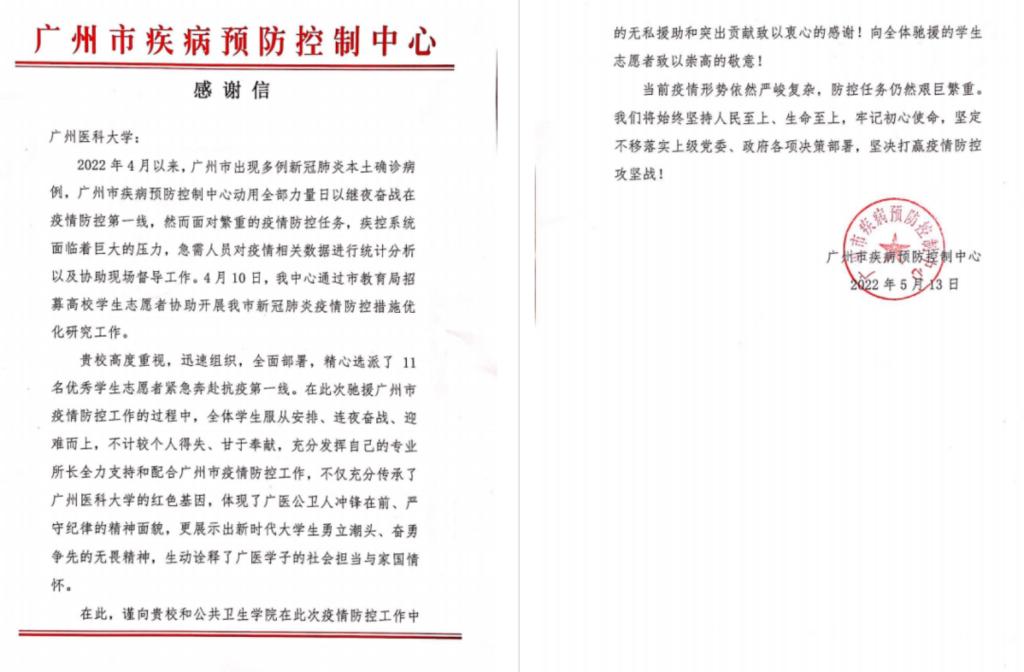 2022年4月,广州市新一轮疫情爆发,亚洲色吧 研究生和本科生充分发扬广医公卫人不畏艰辛、冲锋在前、主动担当的精神风貌,积极响应号召,主动报名参加由广州市卫生健康委、广州市疾病预防控制中心组织的疫情防控志愿服务工作,充分展现了亚洲色吧 公卫学子的专业素质和红色传承,体现“双一流”高校学子的社会责任担当。