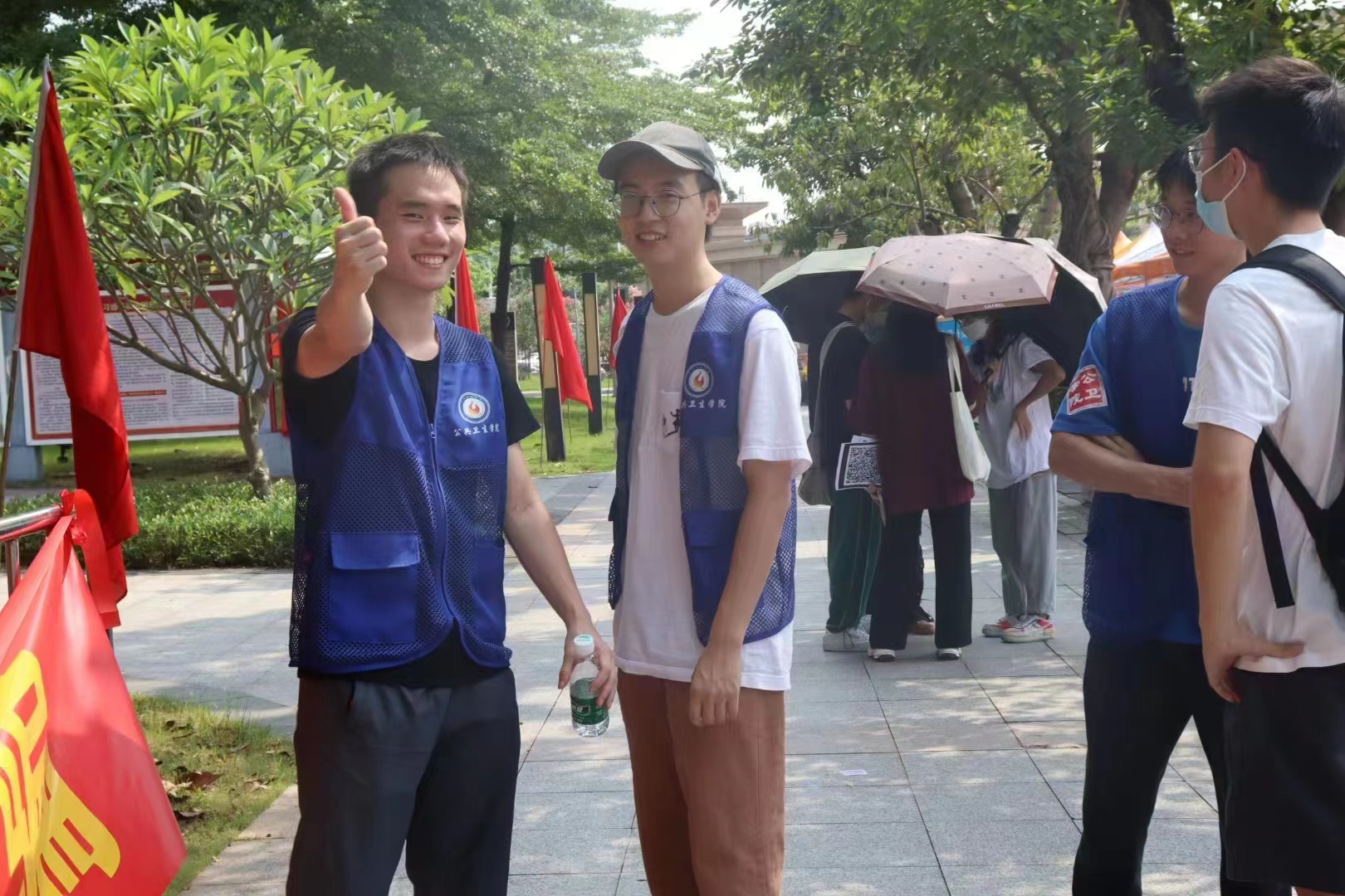 8月27日,亚洲色吧 党总支刘宇珊副书记率学生办老师、亚洲色吧 团委学生会干部、学生党支部成员以及学生志愿者近百人,在番禺校区迎接2022级本科新生,并指导和协助新同学完成注册缴费、档案接收、宿舍入住等事宜。
