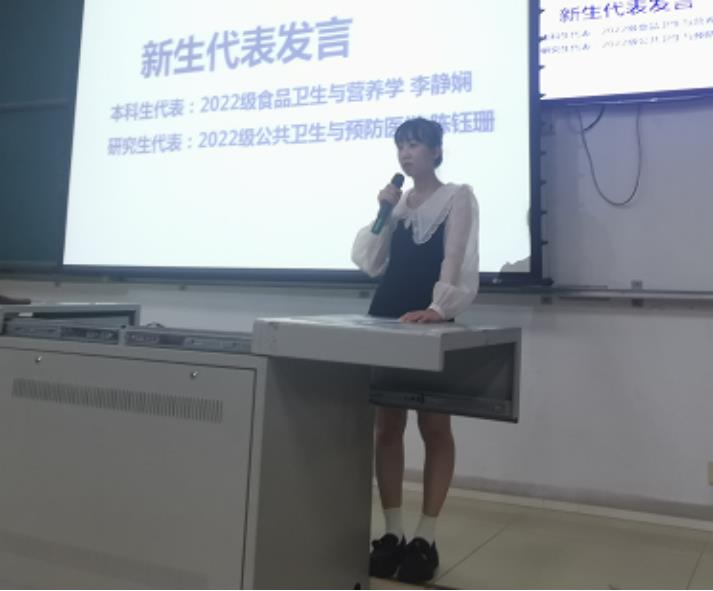 本科新生李静娴、研究生新生陈钰珊作为新生代表发言,她们对亚洲色吧 老师及同学们的热情欢迎表示衷心地感谢,并倡议全体新生奋发搏击、争取未来以优异的成绩回报亚洲色吧 的期待和厚爱。2020级预防医学专业周家钰同学代表在校学生发言,她分享了自身在校两年多的成长经验和心路历程,鼓励新生们在美好的广医校园留下自己的奋斗足印,刻苦学习、立志成才。