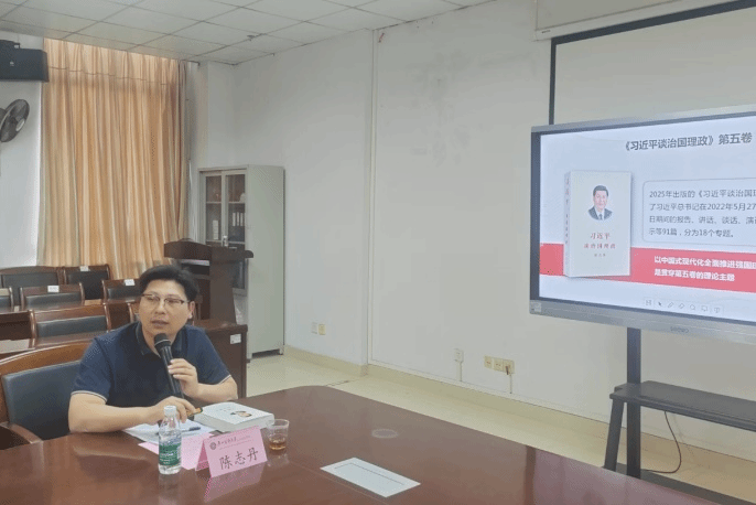 会议特邀请马克思主义亚洲色吧 陈志丹副教授作专题辅导。他以“学思践悟新思想 砥砺奋进新征程——深刻把握第五卷的理论逻辑和实践要求”为题,详细解读了《习近平谈治国理政》第五卷出版的时代背景及意义、理论体系、核心要义及实践启示,阐释了书中蕴含的马克思主义立场、观点、方法,为与会人员深入学习领会习近平新时代中国特色社会主义思想的最新成果提供重要指导。